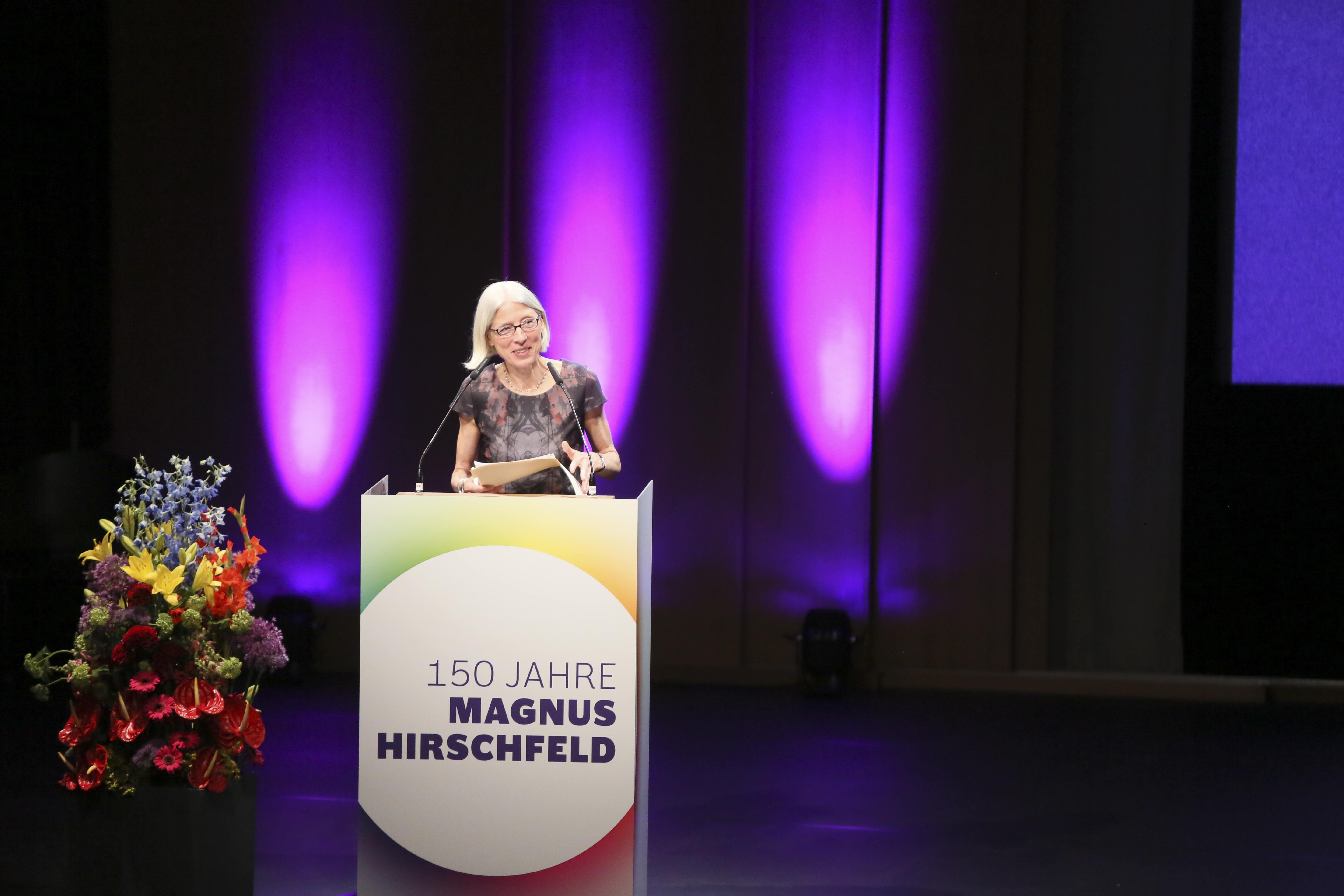 Im Mittelpunkt des Abends stand die Festrede der Historikerin Prof. Dr. Dagmar Herzog (City University of New York). Unter dem Titel „Liebe und Gerechtigkeit“ beschäftigte sie sich mit der fortdauernden Aktualität des Werkes von Hirschfeld und fragte nach dessen Bedeutung in Vergangenheit, Gegenwart und Zukunft.