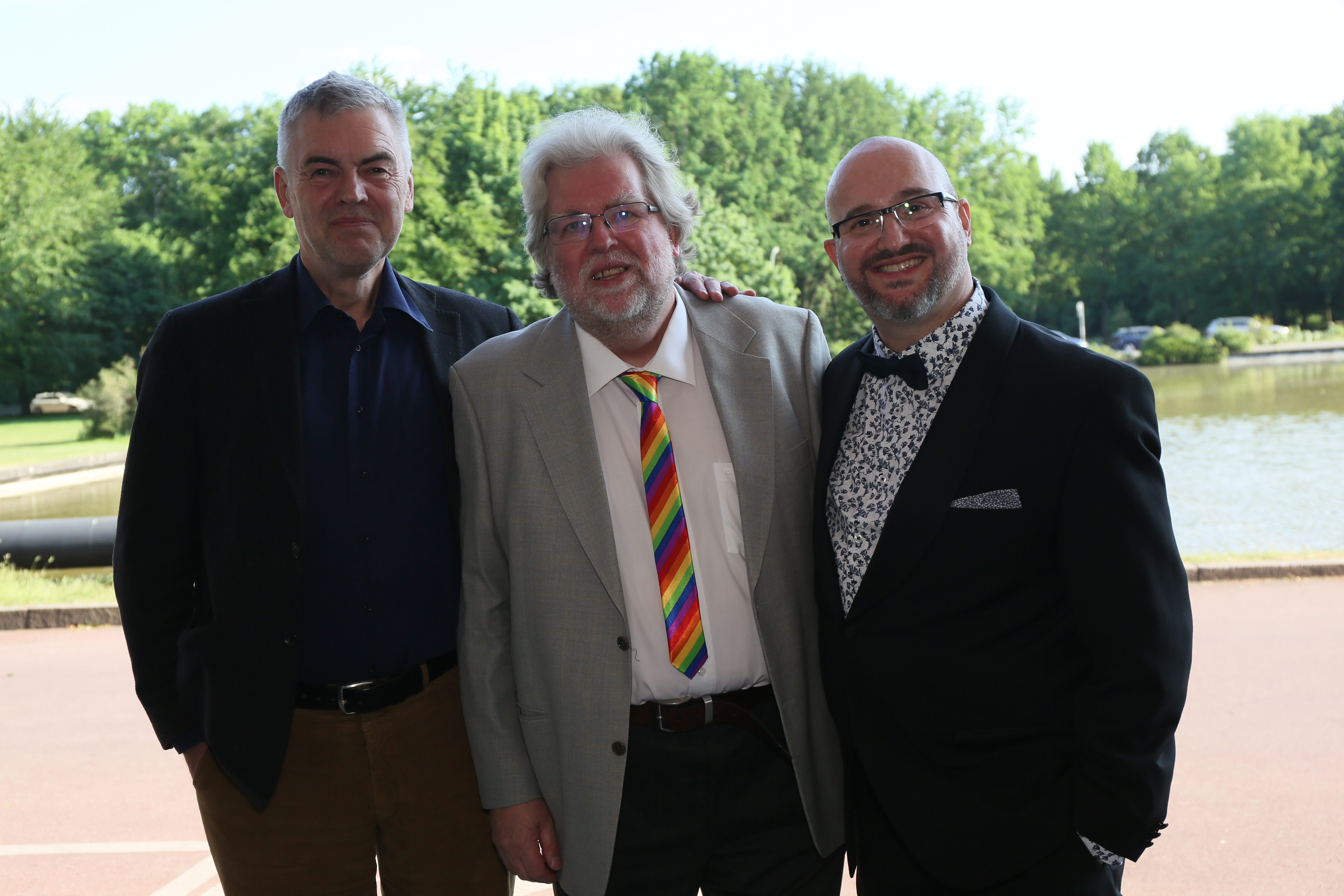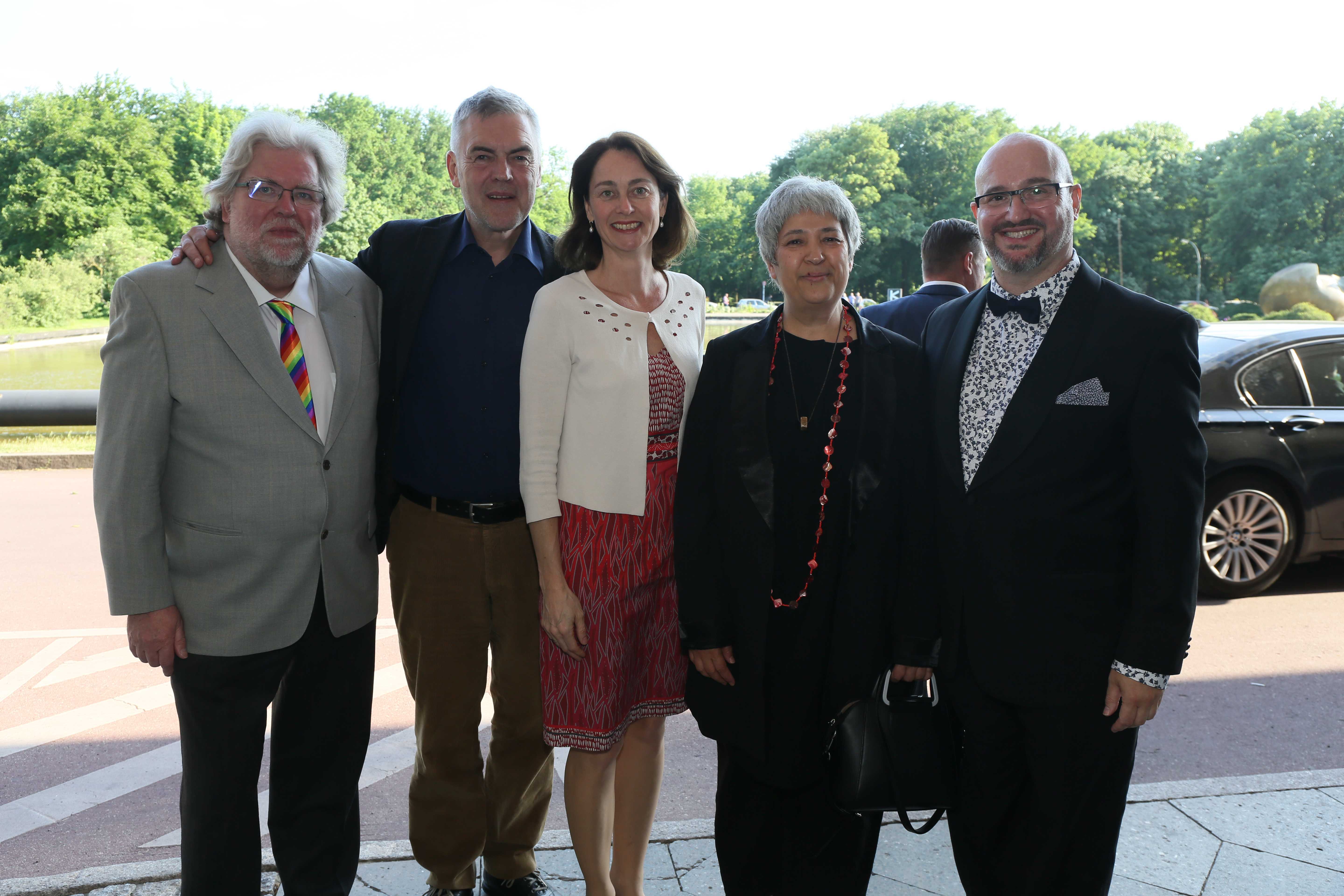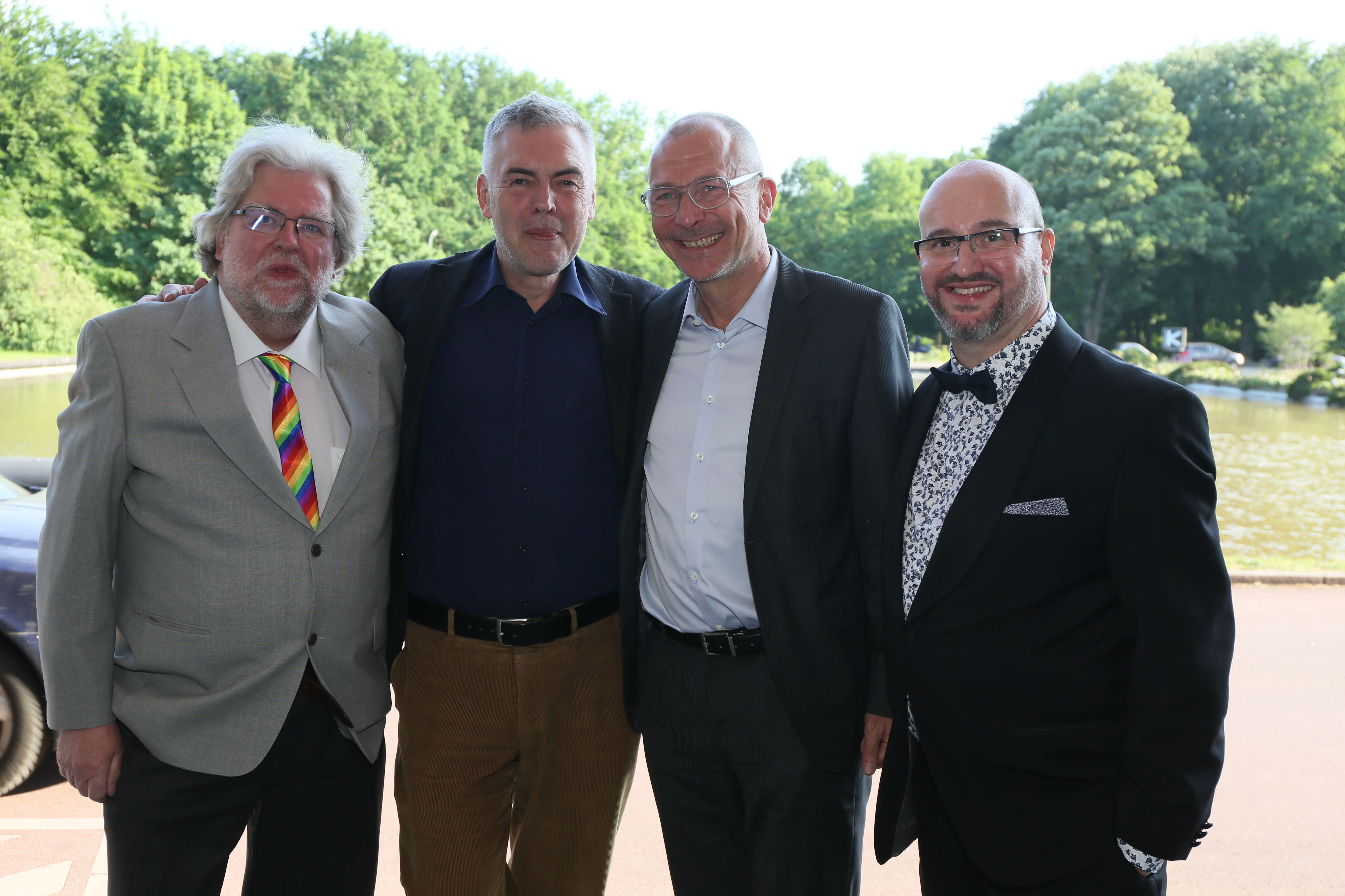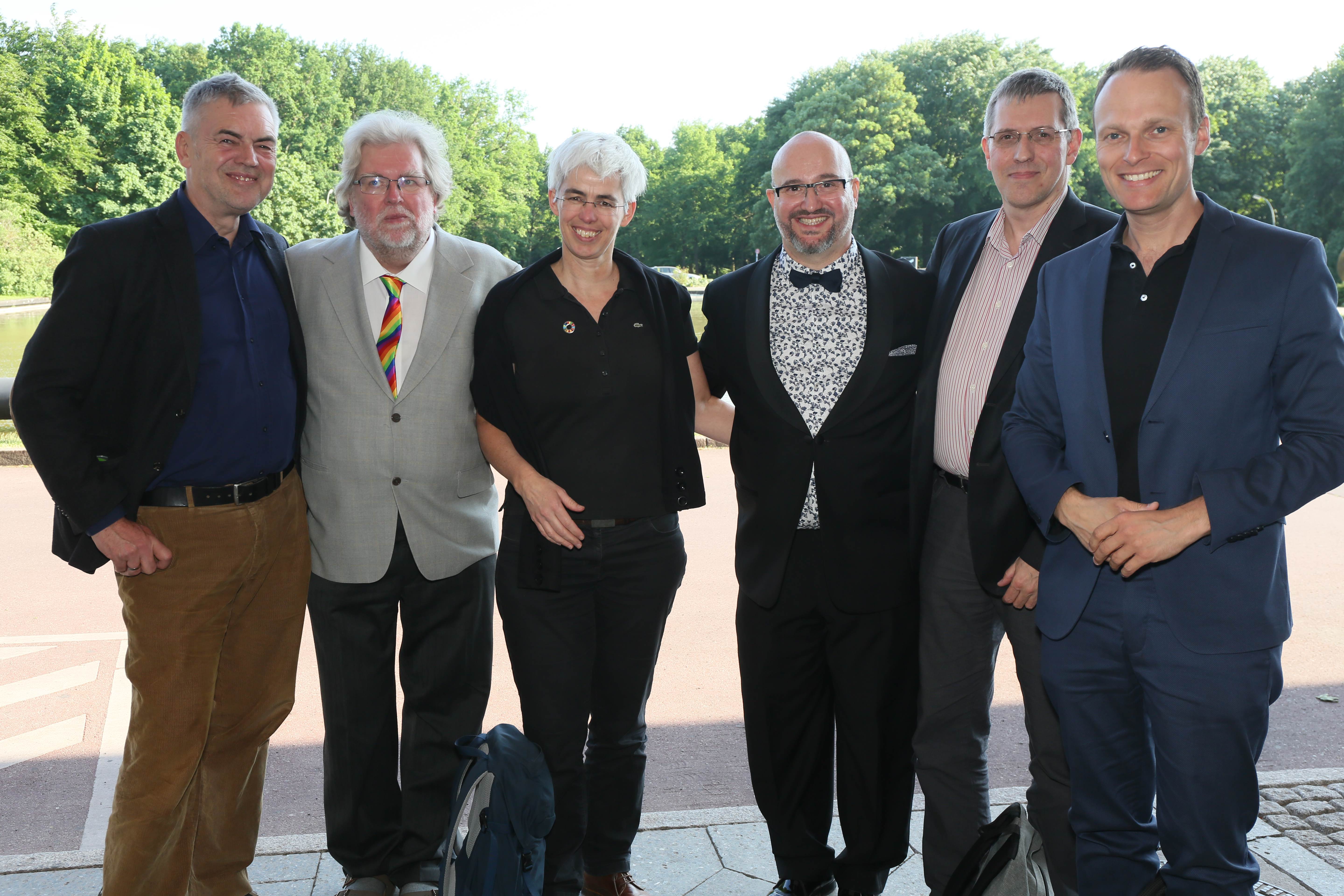 Am ehemaligen Sitz des Instituts für Sexualwissenschaft, dem heutigen Haus der Kulturen der Welt, fand am 14. Mai 2018 der Festakt zum 150. Geburtstag von Magnus Hirschfeld statt. Wir konnten annähernd 900 Gäste aus der LSBTIQ*-Community, aus Politik, Kultur, Gesellschaft, Wirtschaft, Religion und Sport begrüßen. Besondere Ehrengäste waren die 14 Verwandten aus dem Familienkreis Magnus Hirschfelds, die auf Einladung der Magnus-Hirschfeld-Gesellschaft aus Australien, den USA und Italien angereist waren. Neben den Bundesministerinnen der Justiz und für Verbraucherschutz, Dr. Katarina Barley, und für Familie, Senioren, Frauen und Jugend, Franziska Giffey, nahmen an der Veranstaltung auch der Präsident des Zentralrats der Juden in Deutschland, Dr. Josef Schuster, und der Vorsitzende des Zentralrats der Muslime in Deutschland, Aiman Mazyek, teil. Kooperationspartner des Festakts waren der Förderkreis der Bundesstiftung Magnus Hirschfeld, die Magnus Hirschfeld-Gesellschaft e. V., die Senatsverwaltung für Kultur und Europa, das Abraham-Geiger-Kolleg und der Verein der Freund*innen des Elberskirchen-Hirschfeld-Hauses (E2H) – Queeres Kulturhaus in Berlin i. Gr.